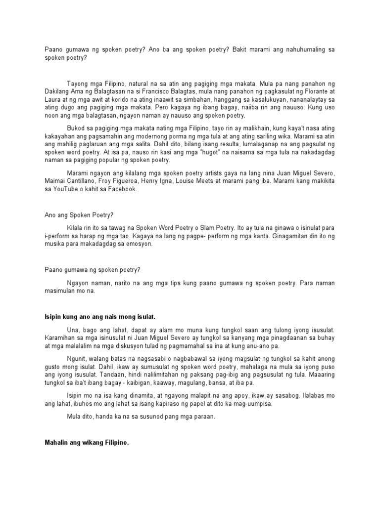 Spoken word poetrydocx - Nasaan ako Tila ba nakapikit ang aking mga mata Ngunit alam kong akou2019y gising na gising pa Kadiliman ang bumabalot sa aking. Potd filipino spoken word poetry grieve sad. Pero ano nga bang nasa likod.
